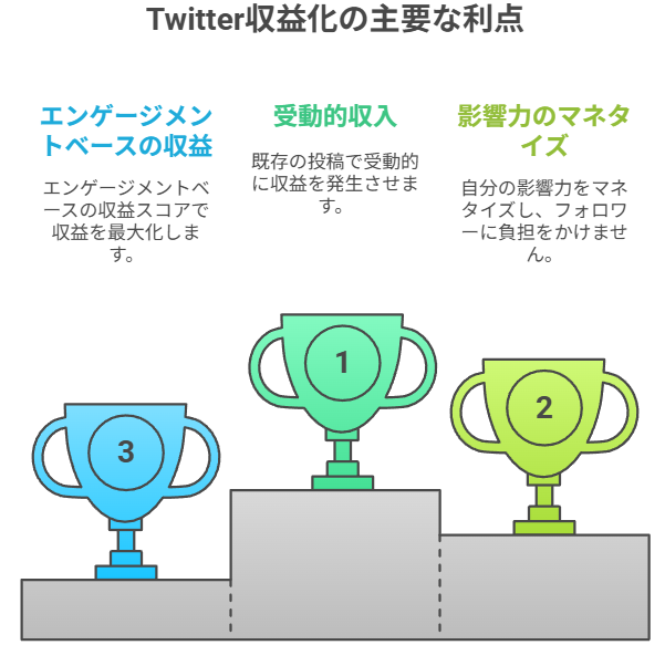 またTwitter外の方法として、企業からのPR案件(タイアップ投稿)やアフィリエイトリンクの活用など、X上の影響力をビジネスに転換する方法も考えられますが、本記事では主にX公式の収益化機能に焦点を当てて解説します。