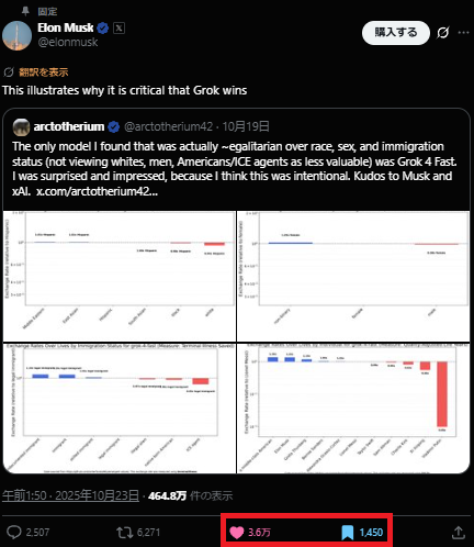 上の画像は、あるツイートの詳細画面です。赤枠内に「89件のブックマーク」と表示されていますが、この数字はそのツイートがブックマークされた回数を示すものです。