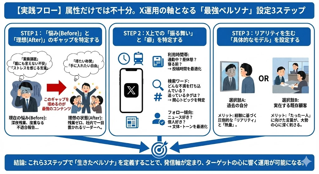 【実践】Twitter(X)運用の軸となるペルソナ設定の3ステップ
