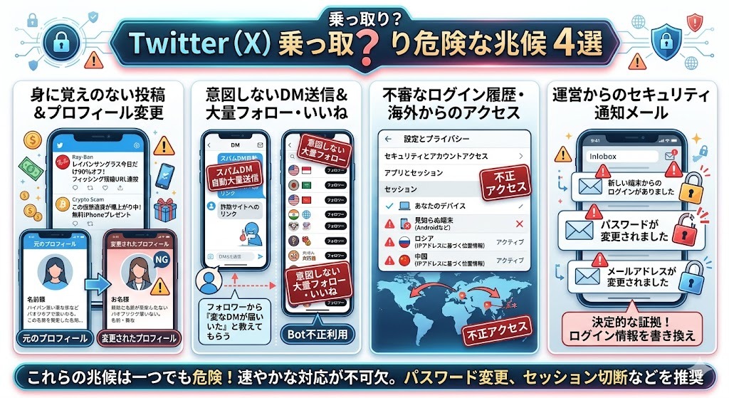 これって乗っ取り?Twitter(X)で確認すべき4つの危険な兆候(サイン)